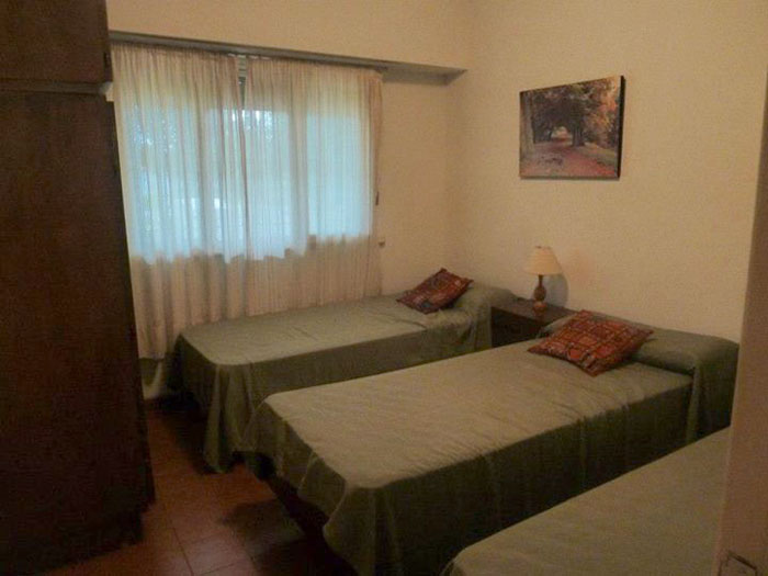 - Un dormitorio con 2 camas y un sillón que se hace cama